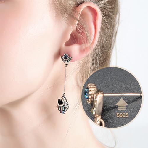 BUKEQILA Orecchini di Zirconia in Argento 925 di Buona Lega per Donna Multicolore Orecchini Lunghi Orecchini francesi Con Delicata Scatola Di Gioielli Regalo di Natale