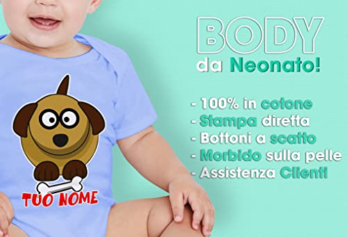 Bulabadoo Body Neonato Celeste - Body Neonato Cane - Body Neonata Divertenti - Body [PERSONALIZZA NOME] - Body da Personalizzare Neonato - Body Neonato Nome Personalizzato