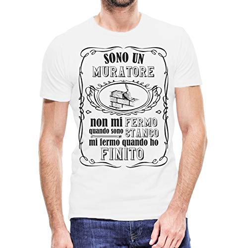 Bulabadoo Tshirt Simpatica Uomo Sono Un Muratore Non Mi Fermo Quando Sono Stanco ma Quando Ho finito Scritta Divertente Ironica Amico Idea Regalo