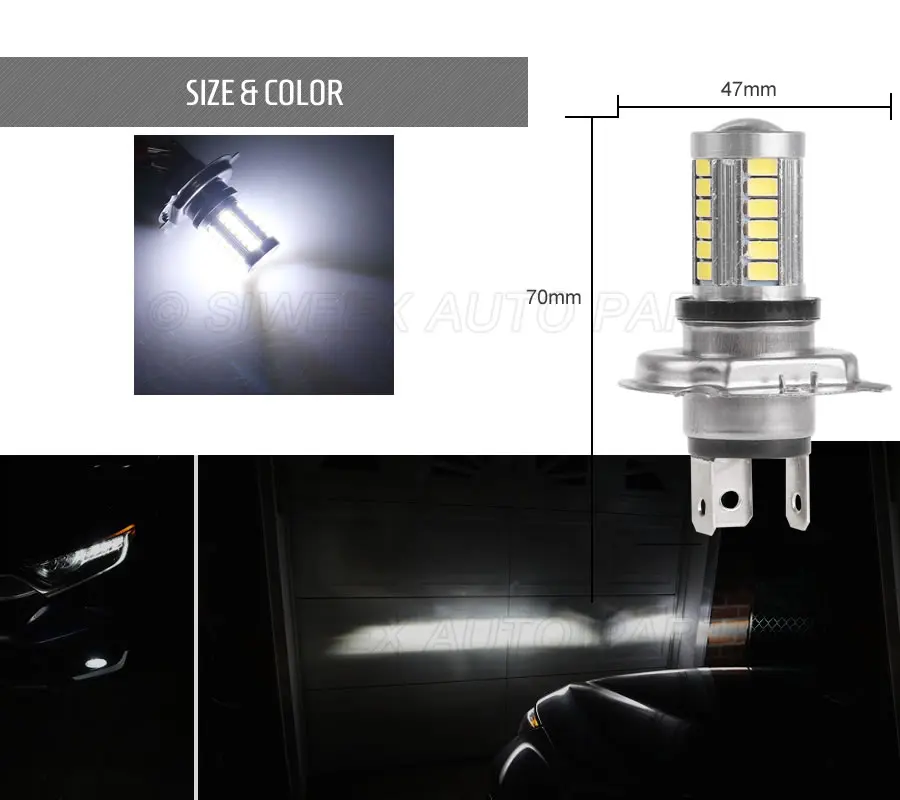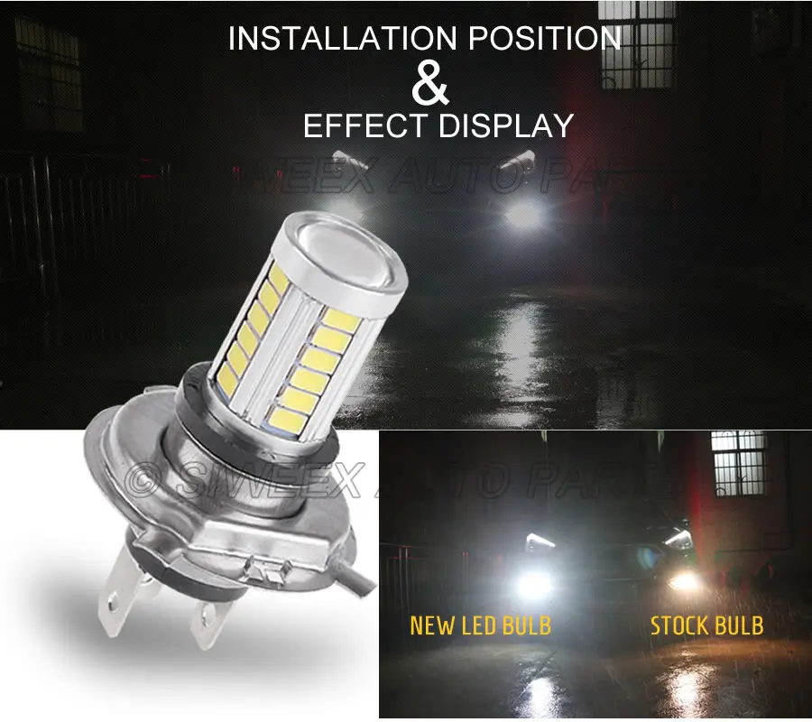 2 PCS H4 Led Car Bulbs 5630 5730 33 SMD Fog Light Driving Motorcycle Light Auto Lamp DC 12V White