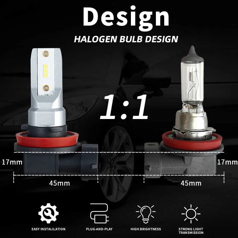 2pcs H11 H7 H8 Led 9005 HB3 9006 HB4 LED Bulbs Car Fog Lights with CSP Chips 6000K White Auto Fog Lamp Day Running Light 12V