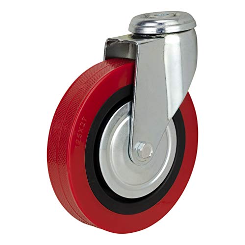 Bulldog Castors - Ruote girevoli in poliuretano da 125 mm, con foro singolo per bullone, resistenti in PU, max 500 kg per set