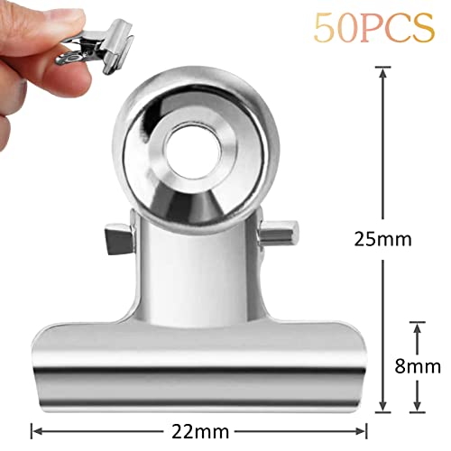 Bulldog Clips, 50 Pezzi 22mm Metallo Clip di Bulldog Clip del Raccoglitore Piccole Bulldog Clips Metal Binder Clips, per Ufficio Scuola e Famiglia (d'argento)