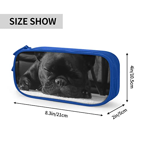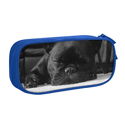Bulldog francese grande astuccio per matite con 2 scomparti, astuccio per matite, astuccio per ragazze, ragazzi, studenti, scuola, ufficio, università -, Blu, Taglia unica, Borsa da scuola