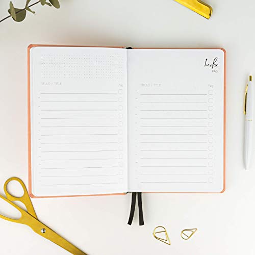 Bullet Journal - Bujo Colors Coral - Takeote 238 A5 Copertura rigida Notebook Polipiel - Premium Grase Paper (Coral)