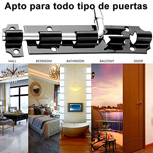 Bullone Della Porta, FANDE 4 Pezzi Lucchetto Scorrevole per Porta, Chiavistelli per Piastre Piccole, Adatto per Porte di Sicurezza, Porte in Legno, Porte Del Bagno(100mm Nero)