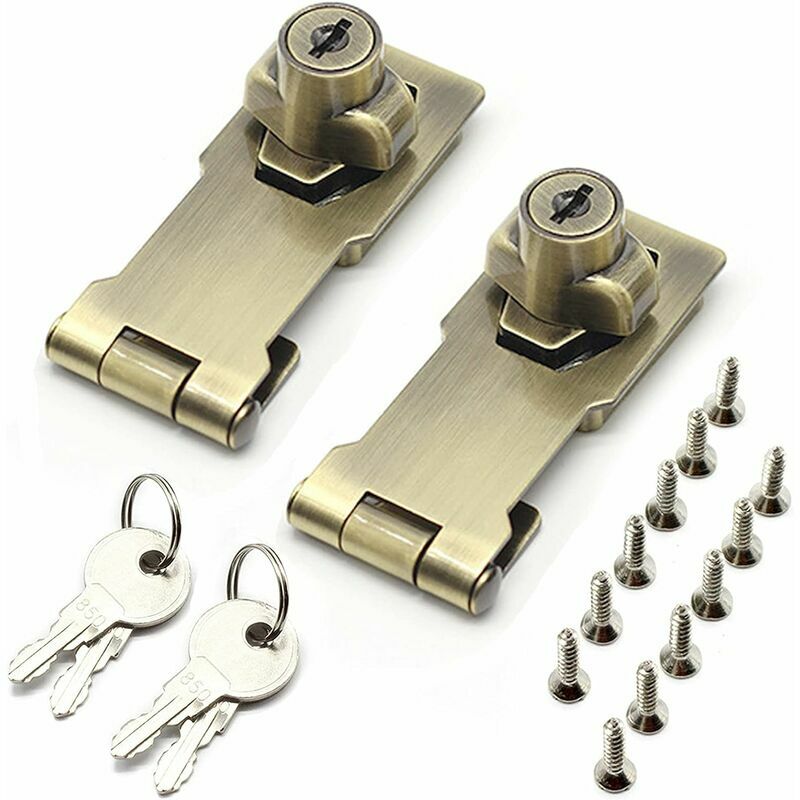 Materiale: il lucchetto antifurto è realizzato in lega di zinco di alta qualità, solido e resistente, impermeabile, antiruggine e antiossidante. Il nucleo del lucchetto integrato è protetto da indiscrezioni e schiacciamenti. Con lucchetto: la fibbia è dotata di un lucchetto, non è necessario acquistare un altro lucchetto, molto comodo. Ogni coppia di serrature viene fornita con due chiavi identiche. Facile da installare: basta usare un cacciavite per installare la fibbia sull'oggetto. È possibile utilizzare la chiave per bloccare o ruotare la manopola di 90 gradi per bloccare. Aprire e chiudere la bobina è facile. Ampia gamma di applicazioni: le chiusure di sicurezza sono adatte per uso interno ed esterno, per porte, armadietti, cassetti, armadi, armadi, scatole, capannoni, garage, ecc. per garantire la tua privacy. Confezione del prodotto: riceverai due fermagli per catenacci in lega di zinco con chiavi e viti, questo fermaglio di sicurezza è resistente e resistente ed è perfetto per