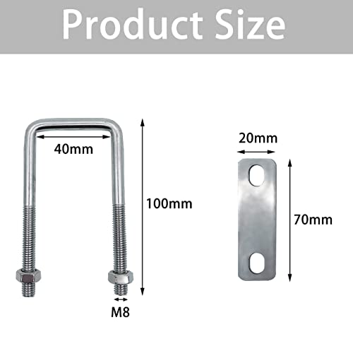 4 Pz Bullone a U quadrato M8 x 100 x 52 mm U Bolt in Acciaio Inox con Dado e Rondella Bulloni a U Quadrati Cavallotto per Hardware di Coperta per applicazioni automobilistiche, domestiche, industriali