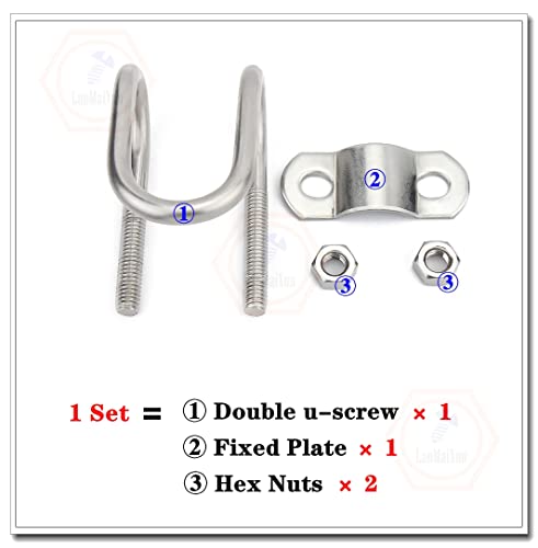 4 Set M6 × 20 mm × 20 mm Bulloni a doppia U in acciaio inossidabile 304 Bulloni a U tondi con dadi e piastre, fissaggio incrociato di raccordi per tubi