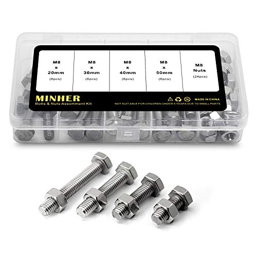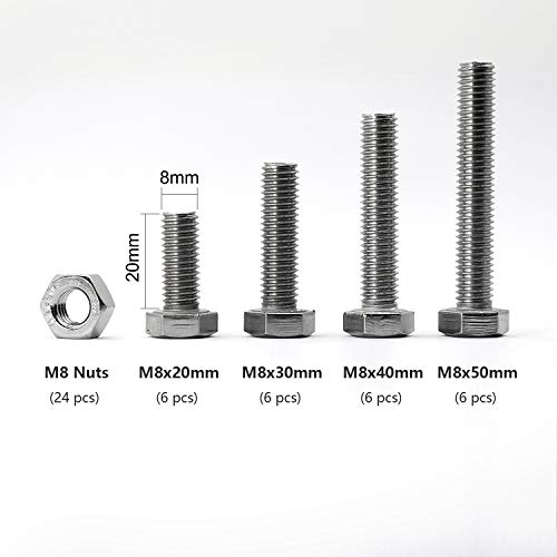 M8 Set di Bulloni e Dadi Esagonali in Acciaio Inossidabile 304, Bulloni per Viti a Macchina (20mm 30mm 40mm 50mm)