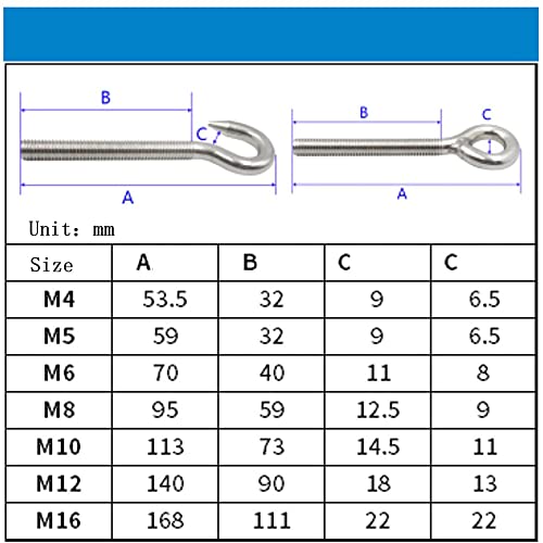 Materiale: il bullone a gancio è realizzato in acciaio inossidabile 304 resistente, resistente alla corrosione, forte e durevole.