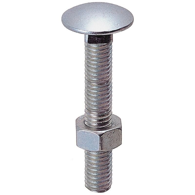 In acciaio zincato. testa tonda con quadro sotto testa. dadi esagonali din 603 - 555. diametro 6 mm lunghezza 40 mm
