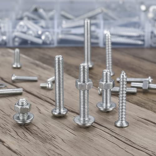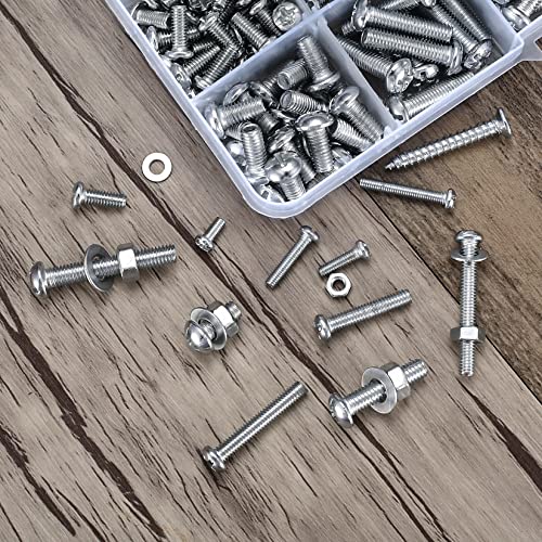 500g Viti Bulloni a Testa Bombata con Dadi Rondelle Assortimento Set, M3 M4 M5 Viti Bulloni a Testa a Croce Dadi Set, Viti Filettate a Testa Esagonale Cilindrica Dadi Rondelle Set