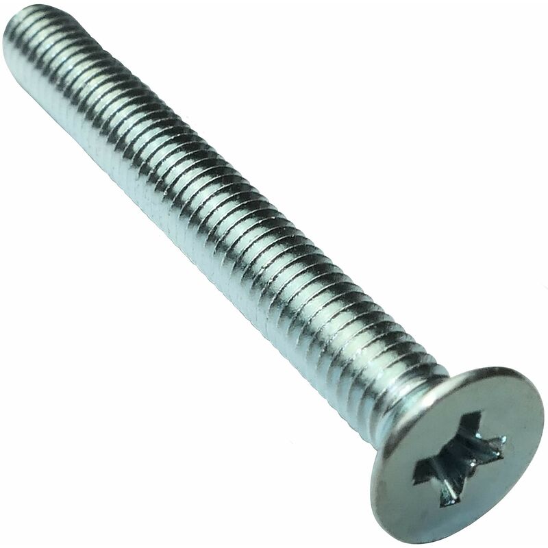 50 bulloni a testa conica. Impronta: Phillips PH1. Filettatura M3. Lunghezza della filettatura: 25 mm. Passo di filettatura: 0,5. Diametro testa: 5,6 mm. Altezza della testa: 1,65 mm. Materiale: acciaio zincato. Classe di resistenza: 4.8. DIN 965A. ISO 7046.