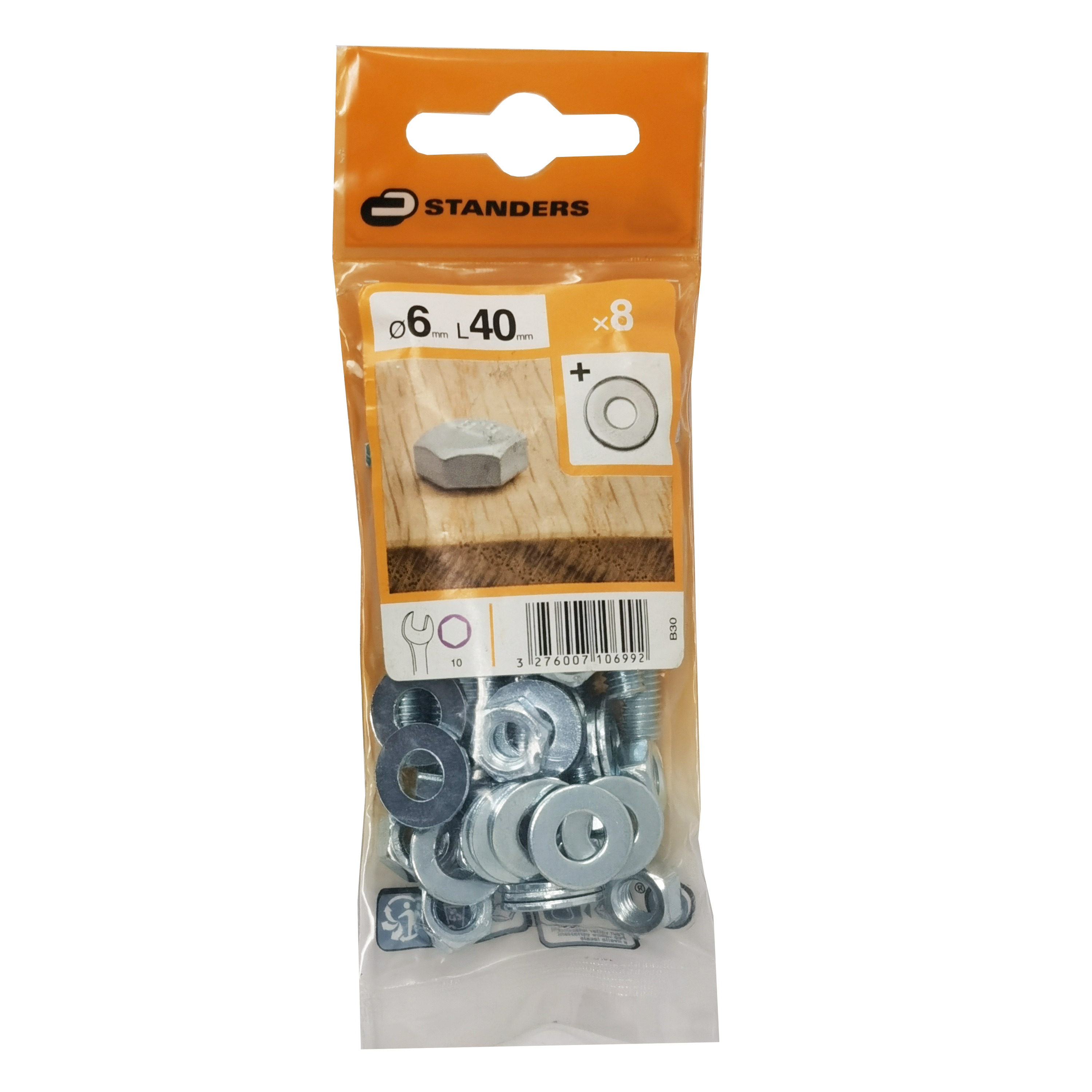 Bulloni e dadi testa esagonale L 40 x, 8 pezzi;