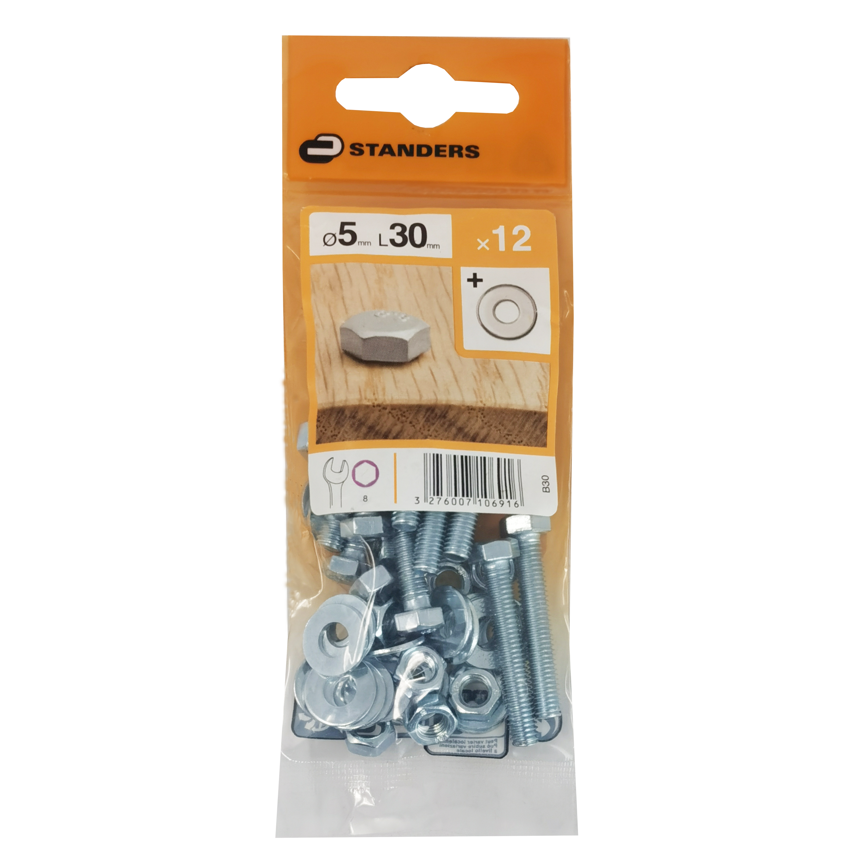 Bulloni e dadi testa esagonale L 30 x, 12 pezzi;