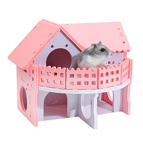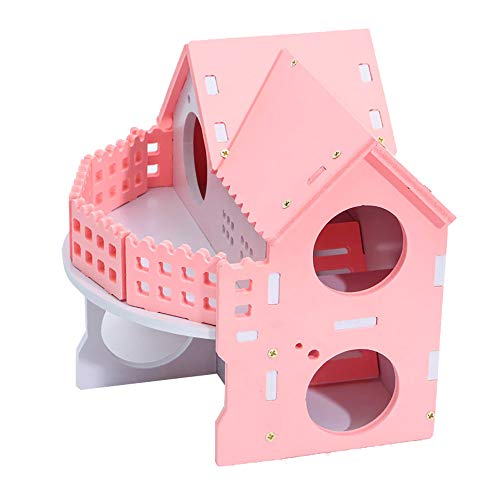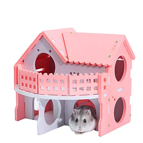 BulzEU- Gabbie di lusso in legno di plastica rosa per criceti siriani topo piccoli animali domestici a due piazze colorate per dormire a casa da gioco (A)