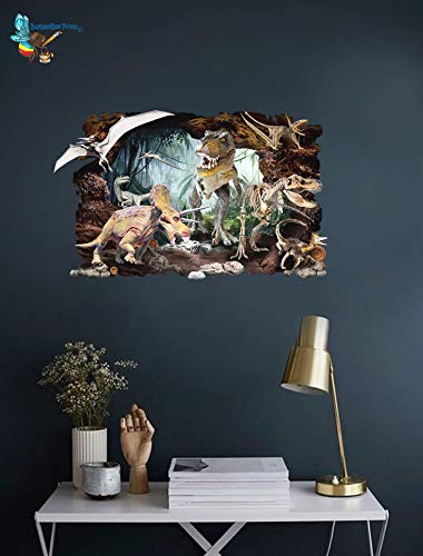 BumbleBee 3D Dinosauri Adesivi Murali Decorazione Decalcomania Buccia e Bastone per Bambini Camera da letto Ragazzi Ragazze - 57x67cm