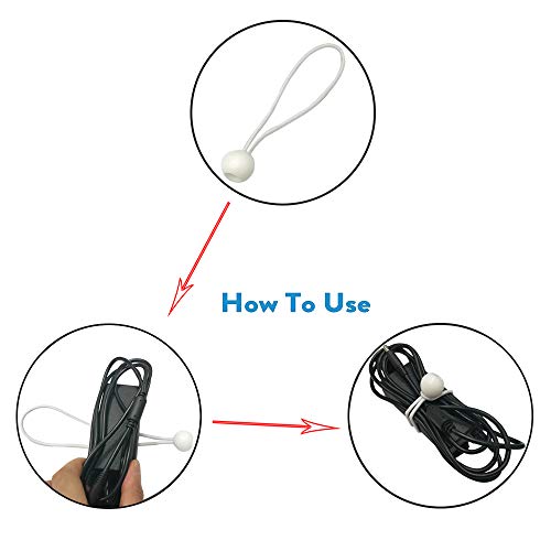 Bungee Ball,Elastici Fissaggio,30 Pezzi Elastici Sfera Bianco Loop Expander,Cordoncino Elastico con Palline Fascette Kit Lssaggio Fissaggio di Tende,Banner Elastici Universali