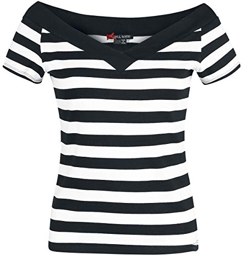 Hell Bunny Top da Donna Caitlin (Bianco/Nero)