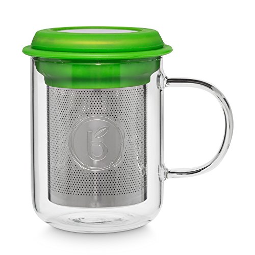 Buntfink - Bicchiere da tè con colino in acciaio inox e coperchio. La tazza da tè è realizzata in vetro borosilicato resistente al calore, il filtro può essere rimosso dal bicchiere. Capacità: 400 ml verde