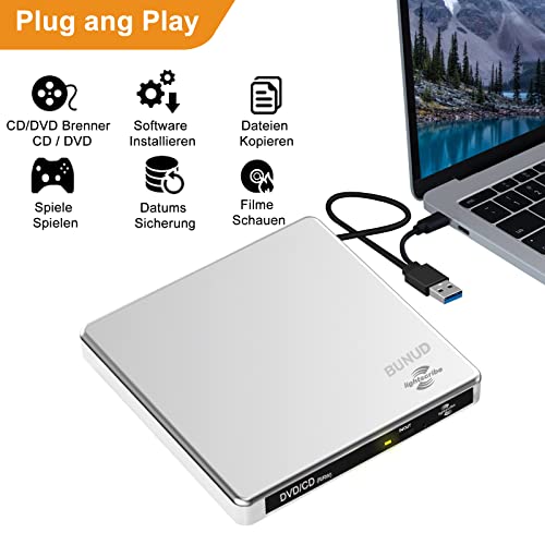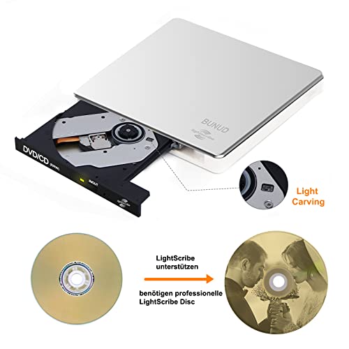 BUNUD LightScribe - Masterizzatore DVD DVD esterno USB 3.0 Type-C con porta SD/TF Slot USB, disco ottico CD DVD per laptop Mac Apple Windows 11/10 MacBook Air Pro PC iMac