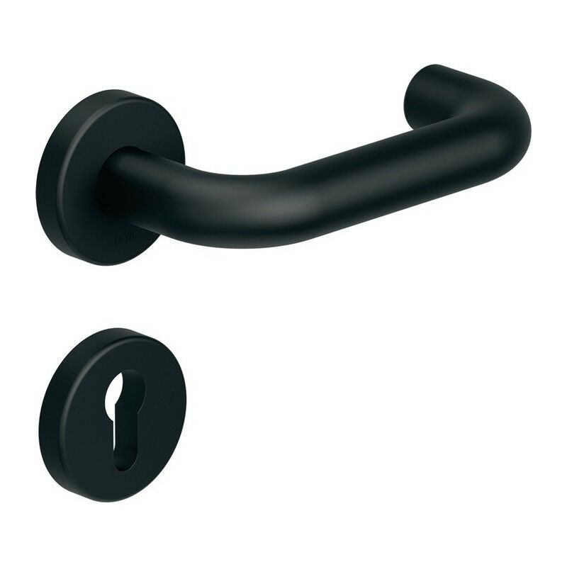 Con penna divisa · in H-Technik secondo DIN 18255 e DIN EN 1906 in acciaio inossidabile, superficie opaca · composto da: maniglia porta 111XAH, diametro 21,3 mm, rosette rotonde 305.21XAH e 306.23XAFS, con modulo di tenuta integrato con supporto a molla · Pusher soddisfa i requisiti di DIN EN 179 e DIN 18040 · Categoria d'uso: Classe 4 · Set antincendio con perno quadrato 9 mm, secondo DIN 18273 · Resistenza al fuoco: Classe B1 · Proposta di esecuzione! Si prega di controllare tutte le dimensioni e le condizioni strutturali in caso di ordine! Altre caratteristiche tecniche: · Supplemento: D/D · Standard: DIN 18273 · Cuscinetto: cuscinetto esente da manutenzione · Quadrato: 9mm. Marca: HEWI, Materiale: Poliammide, Categoria d'uso: 4, Coperchio: rotondo, Tipo: Rosetta, Ø: 55 mm, Perforazione: PZ, Superficie: Nero opaco profondo, Penna: Perno pieno, Spessore lama: 10,5 mm, Attacco spintore: Perno antincendio, Direzione arresto: DIN sinistra/destra, Modello: 111PBR11.230, Versione: Set