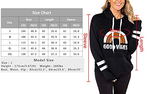 BUOYDM Donna Felpe con Cappuccio a Maniche Lunghe Stampa Arcobaleno Hoodie Sweatshirt Nero M