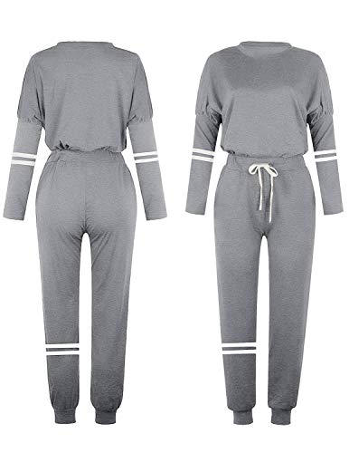BUOYDM Tuta Donna Due Pezzi Sportive Completa Set Pullover + Pantaloni Casual Pigiama Casa Tempo Libero Yoga Sportswear, Grigio S