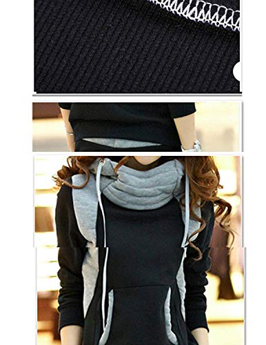 BUOYDM Tuta Donna Sportiva Completa Felpa Cappuccio Collo Alto & Pantaloni 2 pezzi Completo Sportivo Autunno Inverno, Nero M