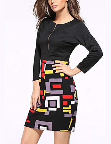 BUOYDM Vestiti Manica Lunga Elegante Abito con Cintura Slim Sera Vestito Donna Corta