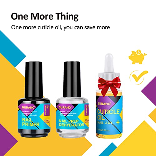 BURANO Naturale Nail Prep Dehydrator e Primer per Unghie Acriliche e Smalto Gel, Long Lasting Acid Free Nail Primer No Burns Bonding Primer con Un Olio Cuticole Regalo 0.5 oz