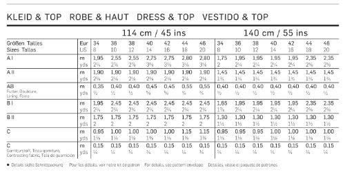 Tessuto consigliato: cotone, raso, taffetà A II, B II: organza