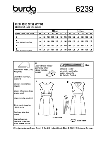 Burda 6239 - Cartamodello per abito da cucito fai da te, da donna, taglia 34-44, livello 3