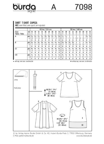Burda Ladies Easy Sewing Pattern 7098 - T-Shirt & Tops Plus Sizes: 18-34 by Burda
