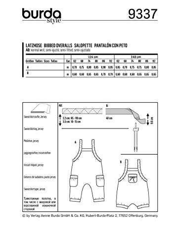 Burda Patron Kids 9337 Salopette, Bianco, da 3 mesi a 2 anni (62 A 92 cm)