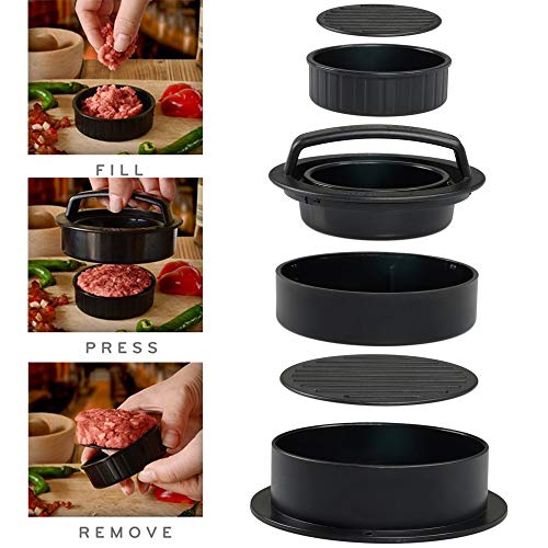 XUBX Burger Press, Set 3 in 1 Pressa per Hamburger, Stampo per Hamburger Normale ripieno, Antiadesiva, Burger farcite e Mini Burger, per Mini/Classici/Ripieni Hamburger/Mgnon/BBQ/Cucina