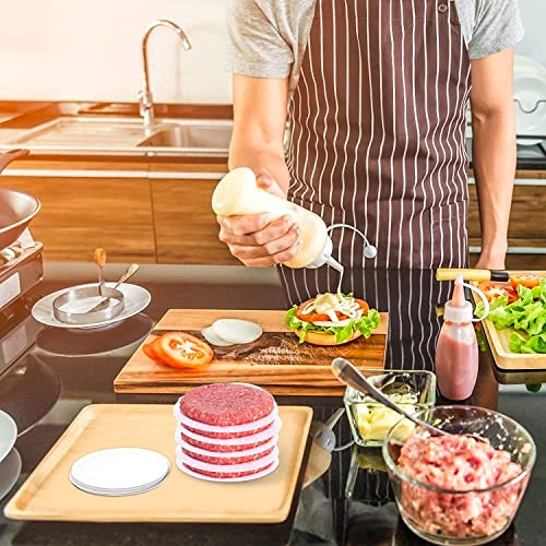 FARE HAMBURGER ELEGANTEMENTE - Si adatta perfettamente a tutte le presse da 5 pollici, rendendo intatte le polpette durante la rimozione. Possono anche essere usati per separare le polpette pressate, evitando che le polpette si attacchino e aiutando a trattenere l'umidità e il sapore durante il congelamento.