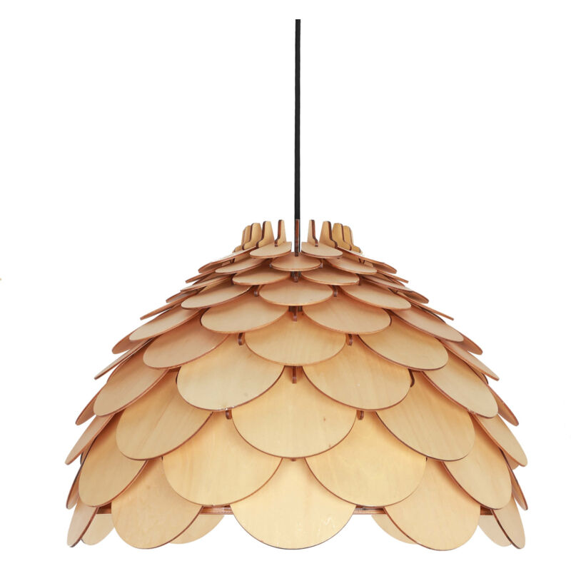 Burgo sospensione grande - è una bellissima lampada a sospensione di grandi dimensioni che, a prima vista, si distingue per la sua costruzione e il suo stile. Il paralume è realizzato in legno, o più precisamente, da tanti sottili elementi in legno che si sovrappongono e ricordano un guscio di ananas. Questo insolito corpo illuminante non può che essere appeso in cucina o sopra il tavolo della sala da pranzo. Questo prodotto offre una fonte di illuminazione e il tutto è sospeso su una struttura in metallo. Il colore è il colore del legno. Le stanze arredate in uno stile molto naturale, rurale o boho si adatteranno meglio alla lampada Burgo. Sicuramente illuminerà magnificamente l'ambiente circostante e creerà una bellissima atmosfera. È disponibile in una versione ancora più piccola, un'ottima notizia per chi sogna la lampada Burgo ma pensa di non poterla acquistare a causa degli ambienti bassi. Dimensioni: altezza 120 cm, diametro 50 cm Materiale principale: Legno Materiale