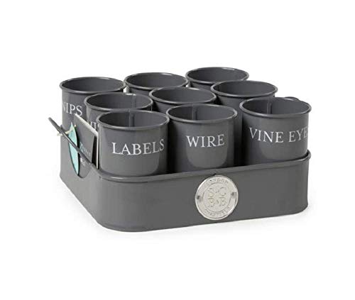 Burgon & Ball Sophie Conran - Gubbins Pots Vassoio con 9 Porta Attrezzi, Grigio, 26x20x10 cm