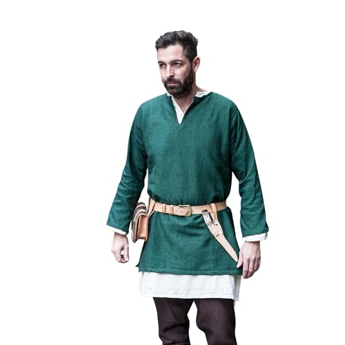 Burgschneider Medievale Manica Lunga Tunica Corta Tunica di Cotone Verde autentica