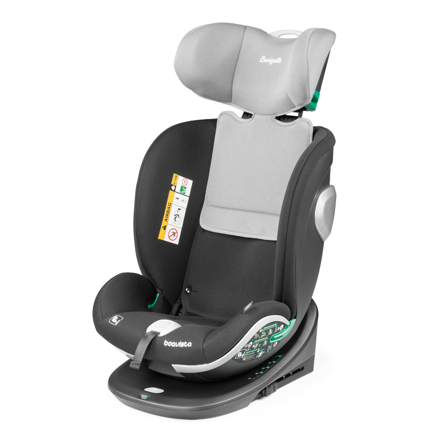 Dettagli del prodotto: i-Size / Dimensioni: da 76 a 150 cm di altezza, Età: da 15 mesi a 12 anni Seggiolino auto all in one girevole Sedile anatomico regolabile in quattro posizioni Può essere ruotato di 360°, facilitando la seduta e l'ingresso del bambino nel seggiolino (deve essere installato contro il senso di marcia) Cuscino Dual stage: si adatta alla crescita del bambino, garantendo maggiore comfort, sostegno e sicurezza (fino a un'altezza di 87 cm) Il poggiatesta può essere regolato in 15 posizioni con una sola mano Il rivestimento può essere rimosso e lavato Contro il senso di marcia - per bambini di altezza compresa tra 40 cm e 105 cm (da 0 a 4 anni) in combinazione con Isofix e l'attacco Top Tether (situato nello schienale) In direzione di marcia - per bambini di altezza compresa tra 76 cm e 105 cm (da 1 a 4 anni) in combinazione con Isofix - e attacco Top Tether (situato nello schienale) In direzione di marcia - per bambini di altezza compresa tra 100 e 150 cm (da 3 a 12 anni) in combinazione con la cintura di sicurezza a 3 punti del veicolo. Per una maggiore stabilità in auto e anche se il bambino non è seduto nel seggiolino, è possibile fissarlo con Isofix. Bedienungsanleitung Dimensioni e peso: Dimensioni (lunghezza x larghezza x altezza): 53,5 x 44 x 60 cm Superficie di seduta (lunghezza x larghezza): 30 x 27 cm Schienale (lunghezza x larghezza): 48 - 56 x 27 cm Peso del prodotto: 14,8 kg Materiale e cura: Materiale rivestimento: 100 % poliestere Istruzioni per la cura: tessuto lavabile a mano Incluso nella consegna: Seggiolino auto con base integrata Riduttore di seduta Manuale di istruzioni
