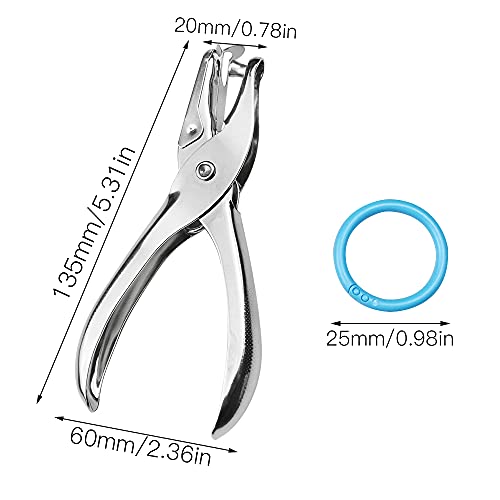 Burkfeeg 2 Pezzi Perforatore a Foro Singolo Punzonatrice per Carta Pinza Perforatrice per Quaderni Album Portachiavi, mit 10 Pezzi Anelli per Raccoglitore in Plastica
