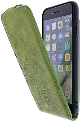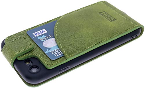 Burkley Custodia protettiva per Apple iPhone 7, in vera pelle, con scomparto per carte di credito, stile vintage, colore verde chiaro