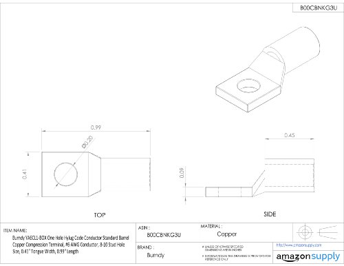 Burndy ya6cl1-box One hole Hylug code Conductor standard Barrel Copper Compression terminal, 6 AWG Conductor, 8 - 10 Stud hole size, lingua 1 cm larghezza, 2,5 cm lunghezza