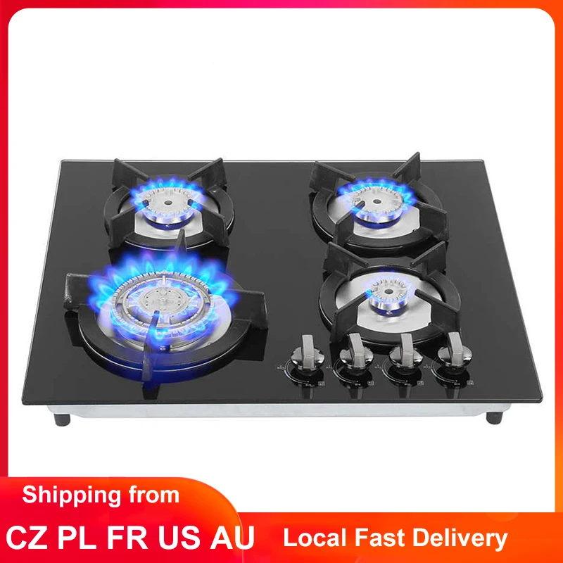 4 Burners Gas Stove Glass Panel Desktop Liquefied Gas Stove Cooker Energy Saving Household Kitchen Cooking Appliance Cookware