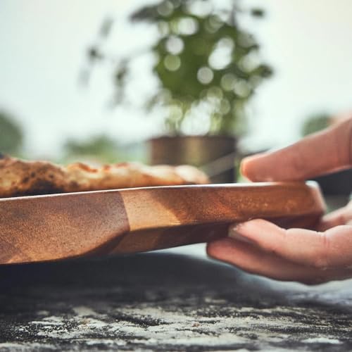 STILE ELEGANTE: questo tagliere rotondo per pizza è realizzato in legno di acacia, che regala a questo accessorio da cucina un aspetto scuro e raffinato.