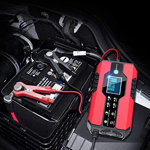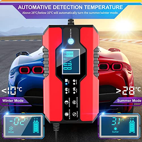 BURNNOVE Caricabatteria per Auto 8A 12V/24V Intelligente Caricabatteria Multi Protezioni Completamente Automatico Display a LED per Auto Motociclette o Barche (Rosso)