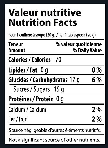 Lo sciroppo d'acero contiene solo 260 calorie (Kcal) per 100g, tanto meno dello zucchero (387 Kcal) o del miele (304 kcal)