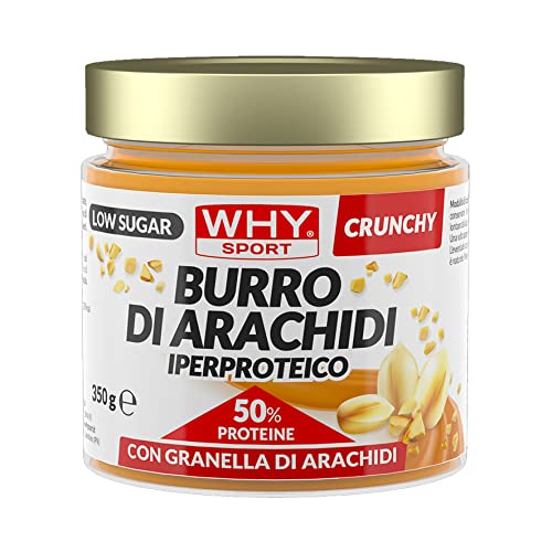 Burro di Arachidi IPERPROTEICO Crunchy. Con il 50% di proteine. 100% arachidi. Senza glutine. Formato da 350g.